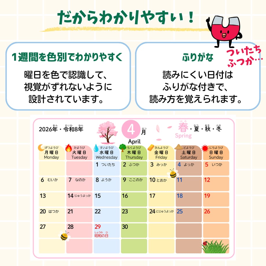 「ついたち」「ふつか」など、読みにくい日も自然に身につきます。